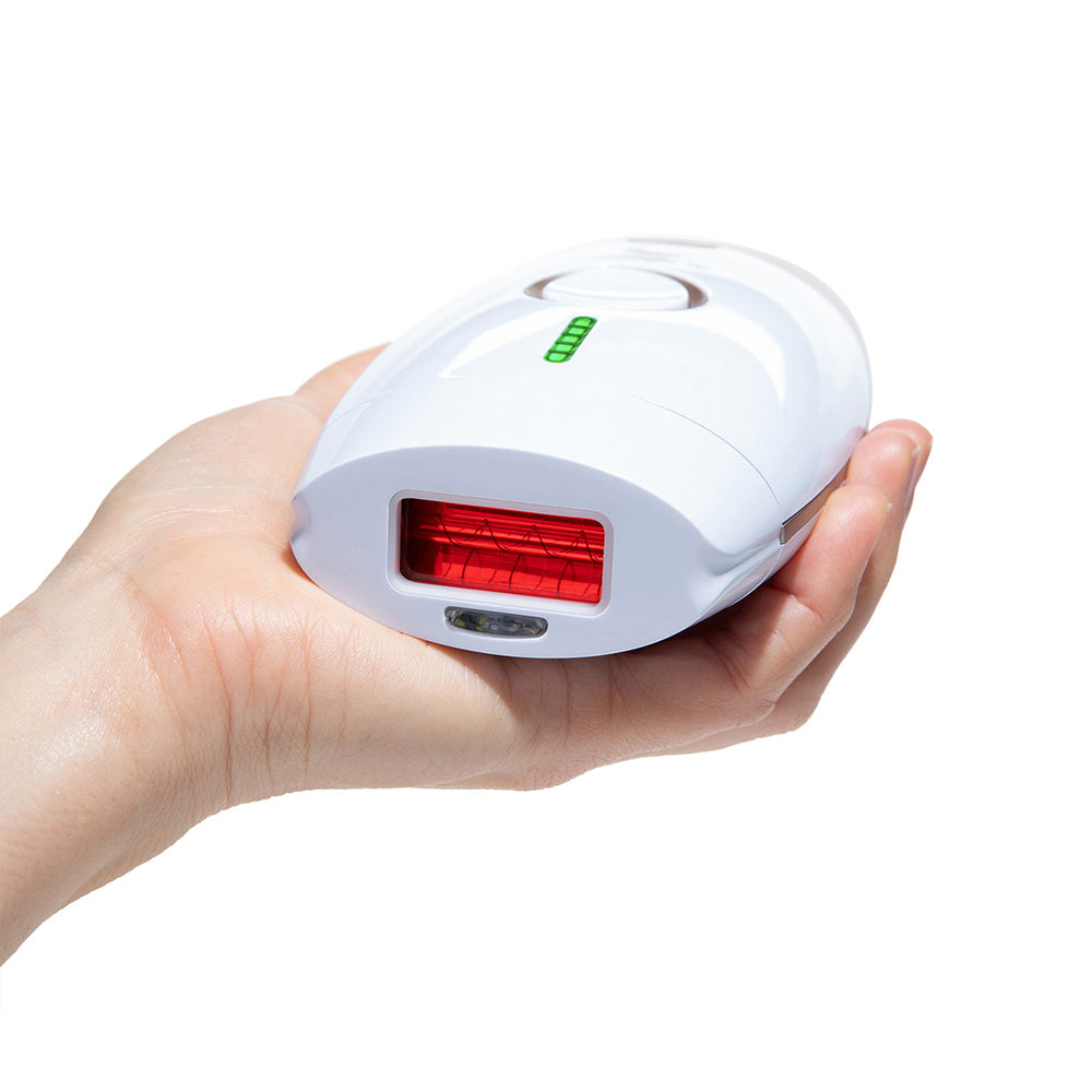 The LunaGlow™ IPL handset operates within a wavelength range of 500-1200 nanometers (nm), optimized to penetrate the skin and target melanin in hair follicles. The emitted intense pulsed light (IPL) is absorbed by the pigment, converting light energy into heat. This heat energy effectively disables the hair follicle, inhibiting future hair growth while leaving surrounding skin tissues unharmed.
